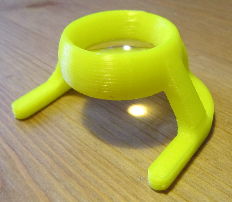 Jedná se o držák lupy pro slabozraké (prateta, 80 let), výška cca 40mm, sířka a délka cca 70mm. Komerčně koupený je každou chvíli ulomený, a stojí neadkvátní sumu (cca 1200,-).