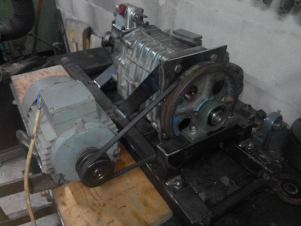 Dneska som sa konecne pohol dalej s hnacim ustrojenstvom sustruhu . Je pravda ze natom robim uz asi tri mesiace no uberal som sa trochu inym smerom a je s toho len skoda mojho casu a usilia . Snad toto bue fungovat . Je to 5Q prevodovka z Skody 1203 napojena na 1,5kW motor . Na vystupnej remenici sa este pracuje . Dve veci ma spomaluju a to skur...e drazkove hriadele a chabe hlinikove telo prevodovky s biednymi ulozeniami lozisiek . Mohol by som to spravit bez podpornych domcov no nechcem aby sa mi to cele rosypalo .
