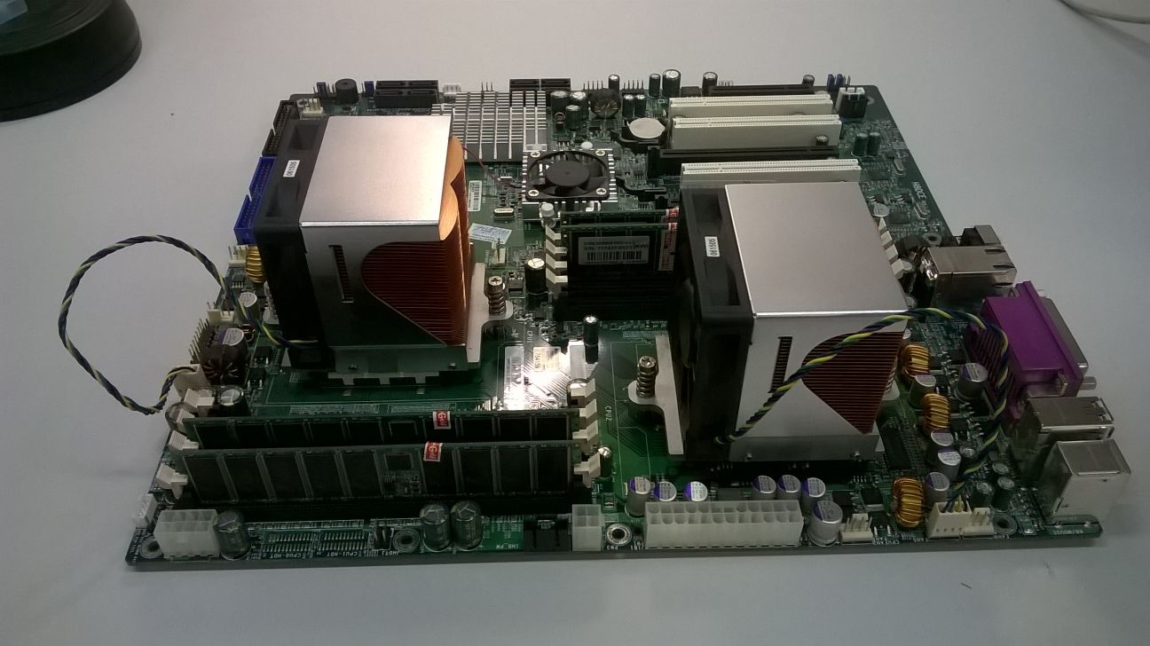 Použitý ale plně funkční MB SUPERMICRO H8DCE včetně 2x CPU Opteron 252 a dvou GB DDR 400 RAM tak jak je to na fotkách. Prodáno