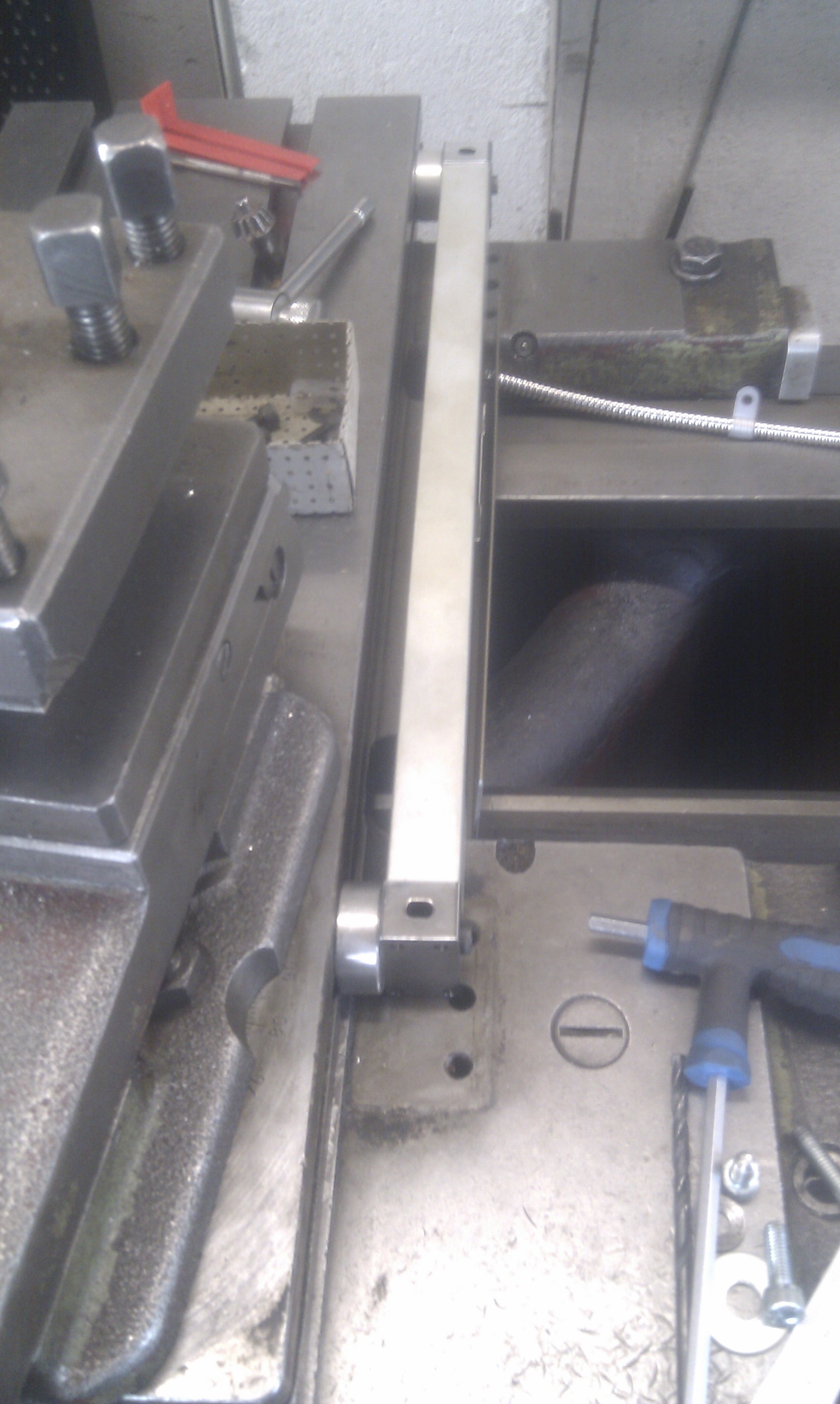 Lištu na příčném suportu jsem dal dvojitou, překrývají se, ay yla větší jistota, že do pravítka nenastříká emulze a nenalítají špony...