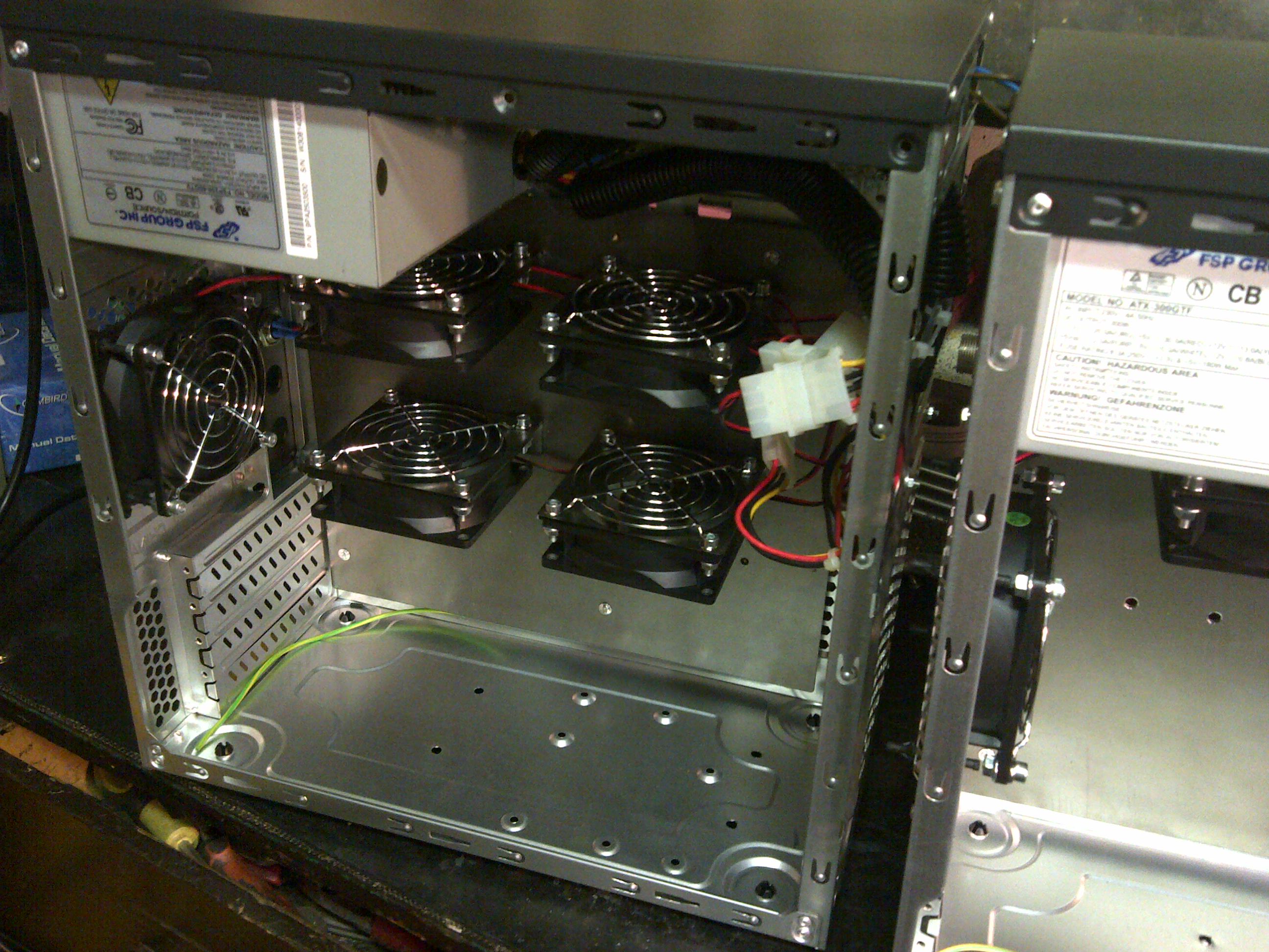 Jde o to že místo pěti ventilátorů které teď slouží pro chlazení a odvod vzduchu ze skříně by stačilo použít dva. Na 100% by se to tam vešlo.
