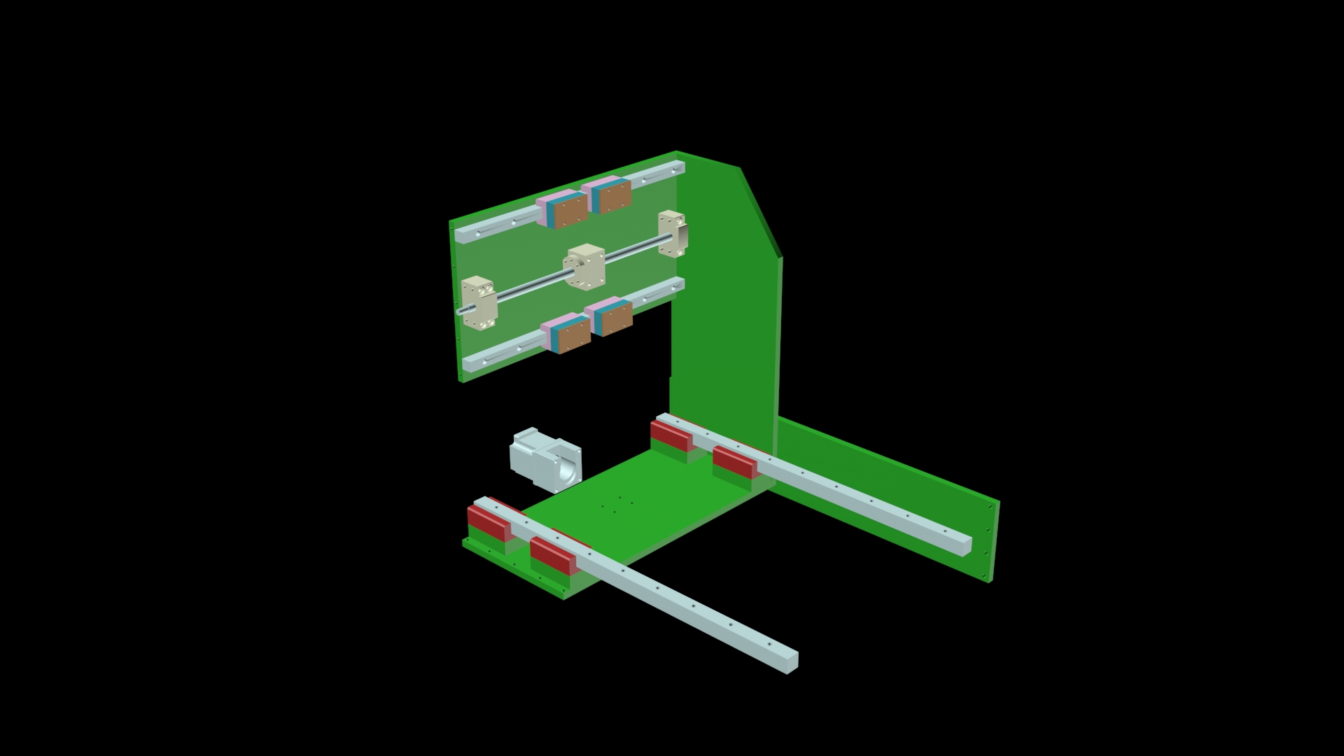 Pohyb by byl řešen kombinací kuličkových šroubů průměru 12mm s NEMA23 krokovými motory NIDEC KH56KM2-902.