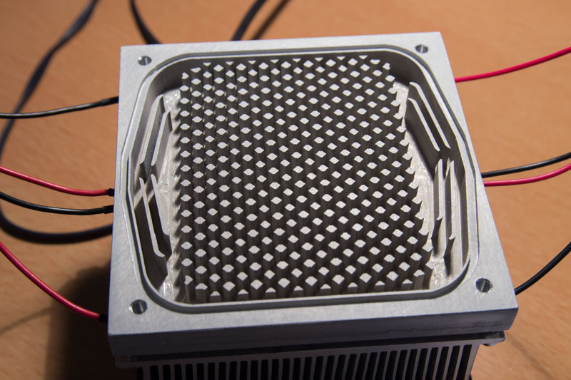 Vidím (tedy spíše nevidím) tam 4 peltiery a na straně jedné plynný výměník (nejspíše vzduch) a kapalinový výměník krásně vyfrézovaný na straně druhé :shock: .