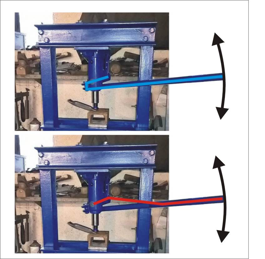 jova: pouhý nasunutí páky do pumpy z druhý strany bohužel nefunguje moc dobře, protože při pohybu páky se mění vzdálenost mezi pístem a uložením páky, člověk pak tlačí jakoby proti směru ve kterým se mění uvedená vzdálenost. Tohle řešení by fungovalo jedině pokud by nebyl píst pevně připojený k páce.
