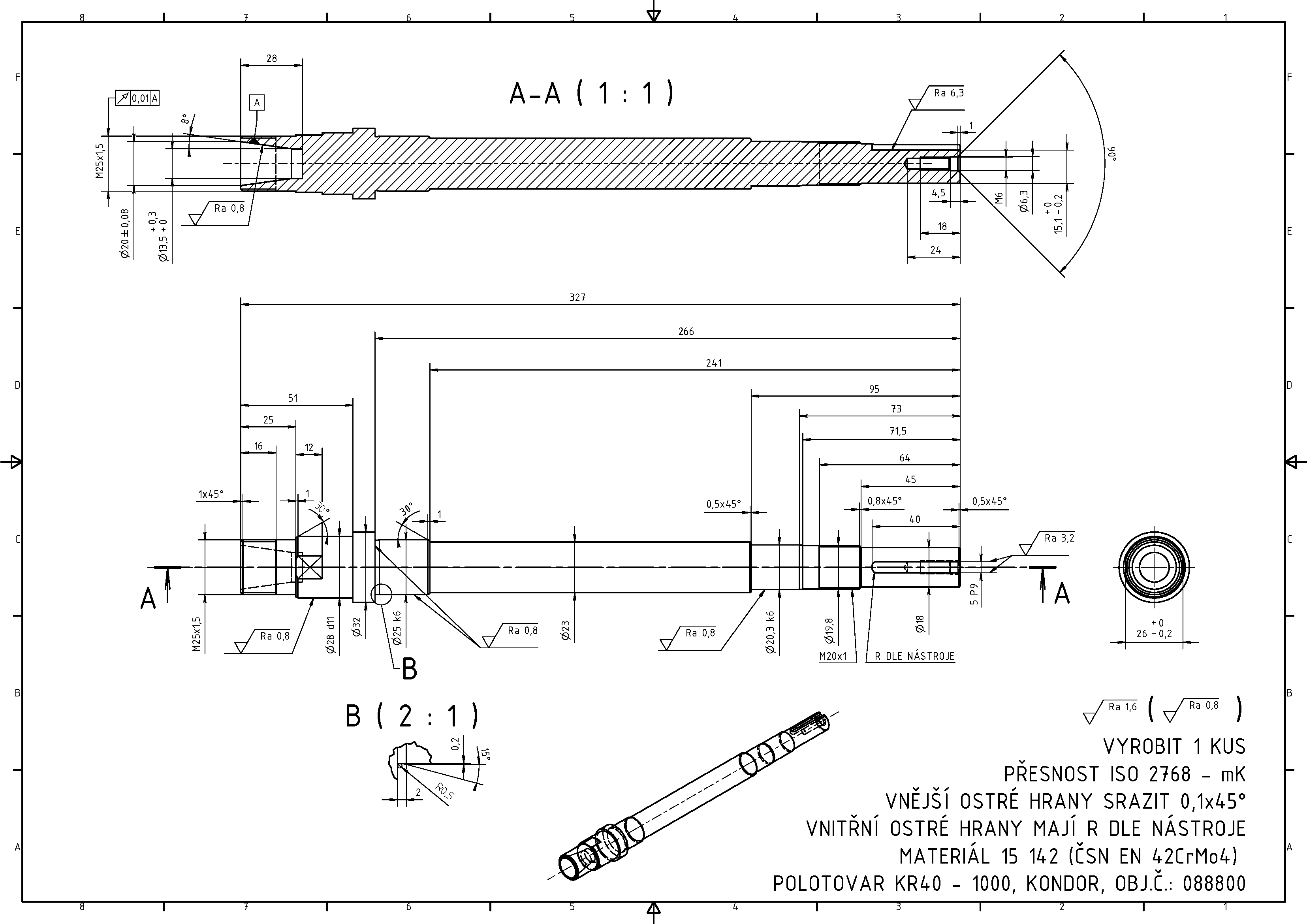 Poptávám výrobu hřídele podle přiloženého obrázku. Polotovar v délce 1 m mohu dodat. K dispozici je STEP model. Termín dodání dohodou.