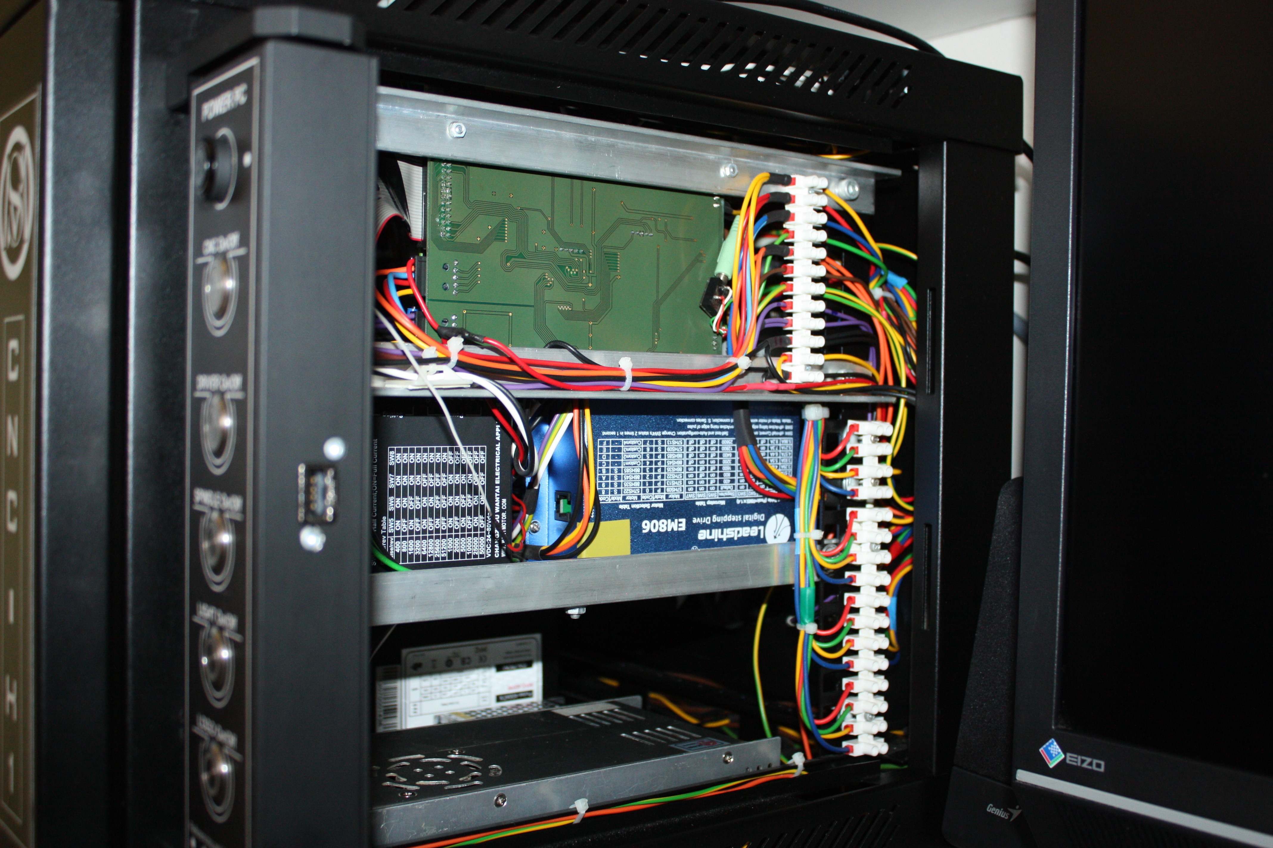 Tato deska řídící kompletně celou cnc frézku má na starosti postupné spínání jak hlavni zapnuti cnc tak zapnuti driveru a vřetene a osvětlení. Mezi výhody patří například že neni možné vypnout nebo zapnout vřeteno pokud nejsou zapnuté drivery tak též pokud není vypnuté vřeteno poté drivery tak stroj prostě nejde vypnout. Atd. Snažili jsme se o co jak nejvíc bezpečnostních prvků pro případ nějaké nežádoucí události ne nebo chybnou obsluhu. Ale i tak jsme přišli na další a další věci které by se dali dodělat a vylepšit. Jak už to tak bývá vždy je co vylepšovat. Vše je navíc galvanicky odděleno. Tato řídící deska je ovládána tlačítky na pravé straně racu. Krabička a drážky je taky naše výroba a je k ni taky vlákno. Kde jsou i nějaké fotky a videa z výroby. Odkaz zde http://www.c-n-c.cz/viewtopic.php?f=15& ... &start=120" onclick="window.open(this.href);return false;.