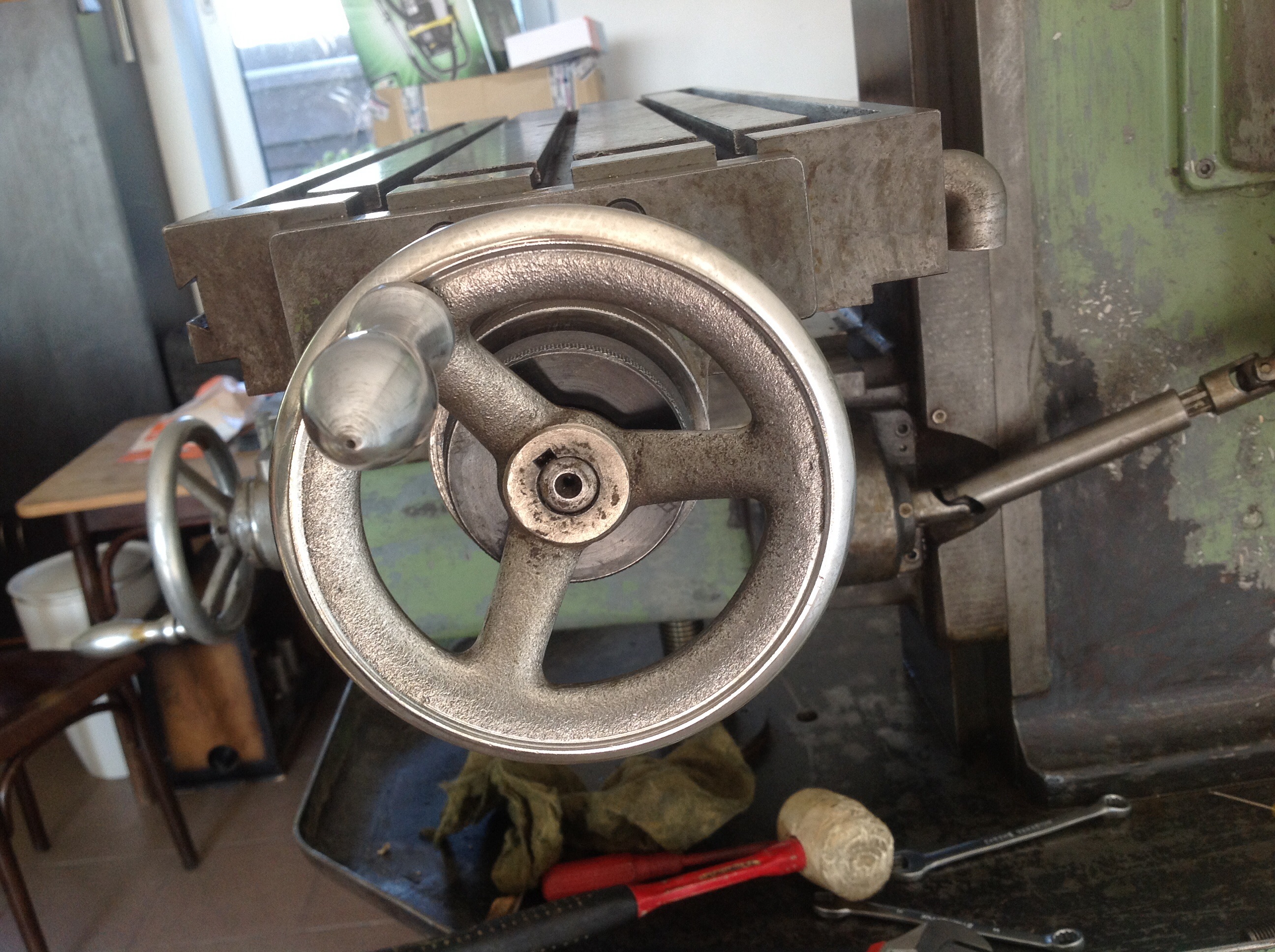 Tak, tu su prve spionazne fotky z garaze.manzelka to este nerozdychala. Vo frezke je viac bordelu nez zeleza, a kazda tocka na nej je ina. Pokusal som sa odmontovat stol, ale nepodarilo sa mi dat dole tu tocku (handwheel). Vyrazil som pruzny kolik z hriadela srobu, ale neviem, co dalej. Tocka je zaistena klinom. Vie niekto poradit, ako to rozmontovat?
