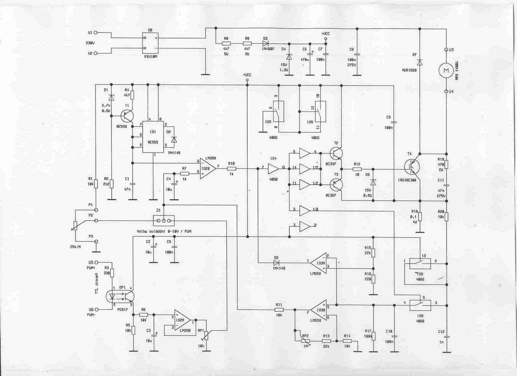 Samozřejmě, že ten pračkový motor bude fungovat na ss napětí. Je to sériový(trakční) motor. A kde bys toho psa chtěl hledat. Akorát bude problém ten motor brzdit. Já mám vyzkoušenou brzdu cizím proudem do statorového vinutí a zkratovat kotvu. Samozřejmě při odpojeném napájení, to jsem dělal pomoci relátka s několika kontakty. Ale už se tomu věnovat nebudu, jsou lepší pohony a motory. Záleží na potřebě co se dělá a co se požaduje a očekává. Pračkový motor toho moc nenabízí, kromě té zpětné vazby tvořenou tachogenerátorem. Jeden mnou vyzkoušený a provozovaný regulátor viz obr.turbyho píše:myslis DC a PWM?! to mozna neni spatny napad. ty motory z pracek bezi i na DC v pohode? teoreticky by meli, ale neni nekde zakopany pes?
