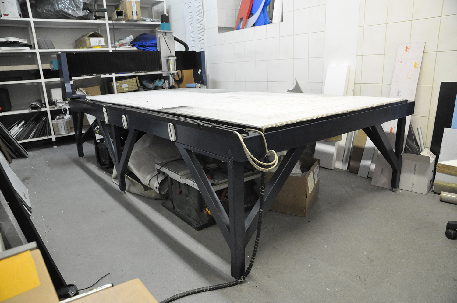 Stůl je masivní a dostatečně tuhý, celková hmotnost cca 500 kg.