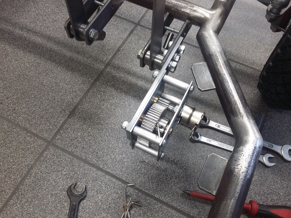 Hnané bude jedno koleso cez planetovu prevodovku 1:15.