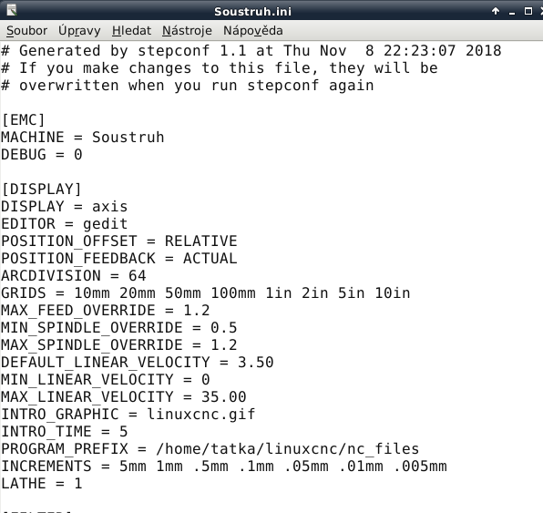 prosím o radu. Mám naistalovaný LinuxCNC 2.7.0 na Debianu. Dříve mě motorky chodily (Ubuntu a nějaká starší verze LinuxuCNC). Teď ne a ne. Když spustím Stepconf tak se motorky točí, ale když spustím LinuxCNC, tak motorky se netočí, ale osy na monitoru jezdí. Můžete mě prosím někdo poradit?