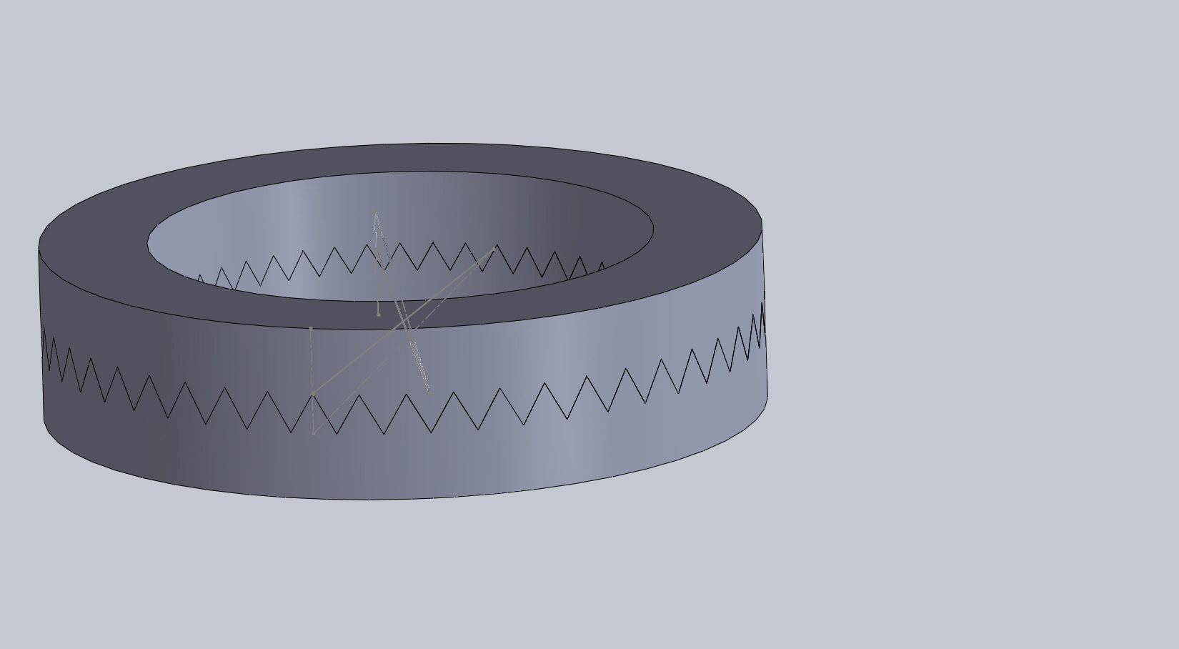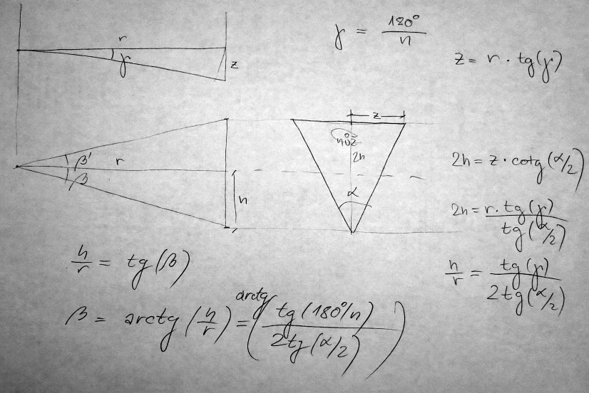na vnitrnim nebo vnejsim prumeru mi vznika mezera a nevim jak se dobrat uhlu pod kterym mam tahnout profil trojuhelniku s vrcholovym uhlem 60 stupnu (bude se to frezovat nejakym dostupnym nastrojem na delicce tj. volim 60 stupnu)
