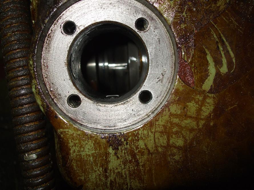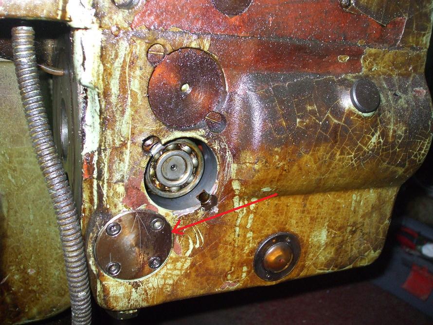 čtyřhraná hřídel, odtud vede dírka k rovině styku skříně s frémou, tím je napájeno celé mazání stolu, takže spotřebovaný