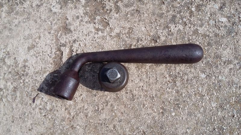 kľučka na sústruh, na zaisťovanie nožovej hlavy. V matici je závit M20. spolu, cena 10eur