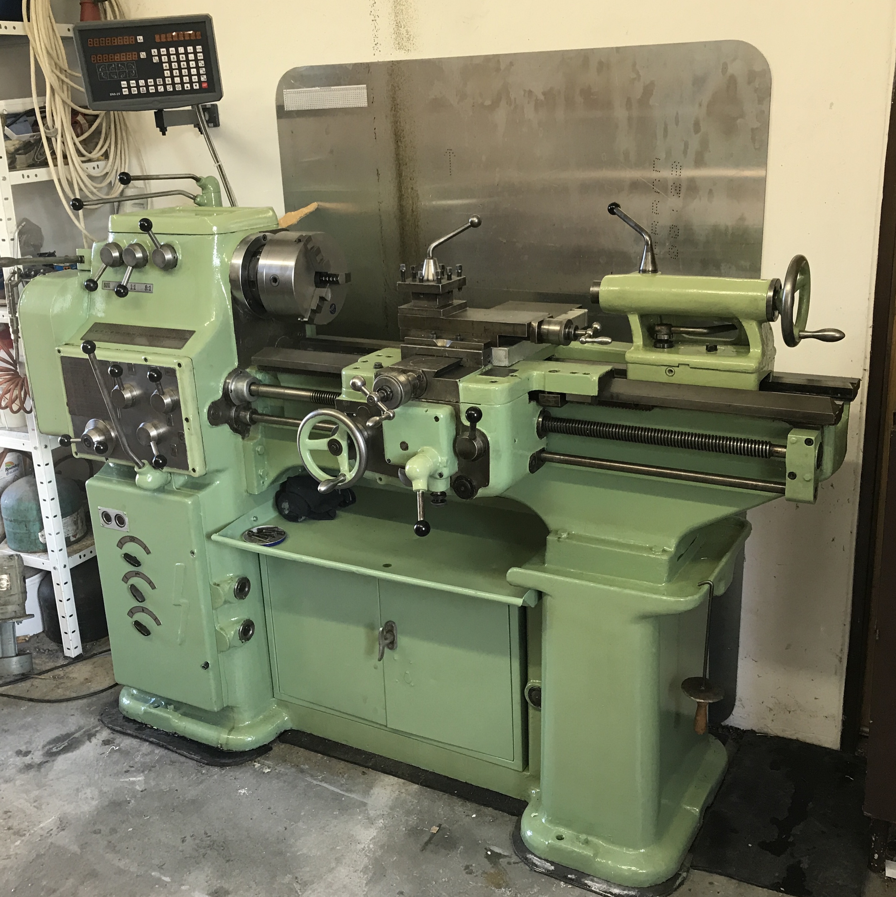 Na mašině jsem před samotným lakem vyměnil několik součástí, ložisek a těsnění, dál jsem zprovoznil suportovou pumpu a dal do kupy elektroinstalaci. Taky jsem pro mašinu přizpůsobil kleštinové rychloupínání z S28 a nechal vybrousit upínací kužel, co se dává do vřetena.