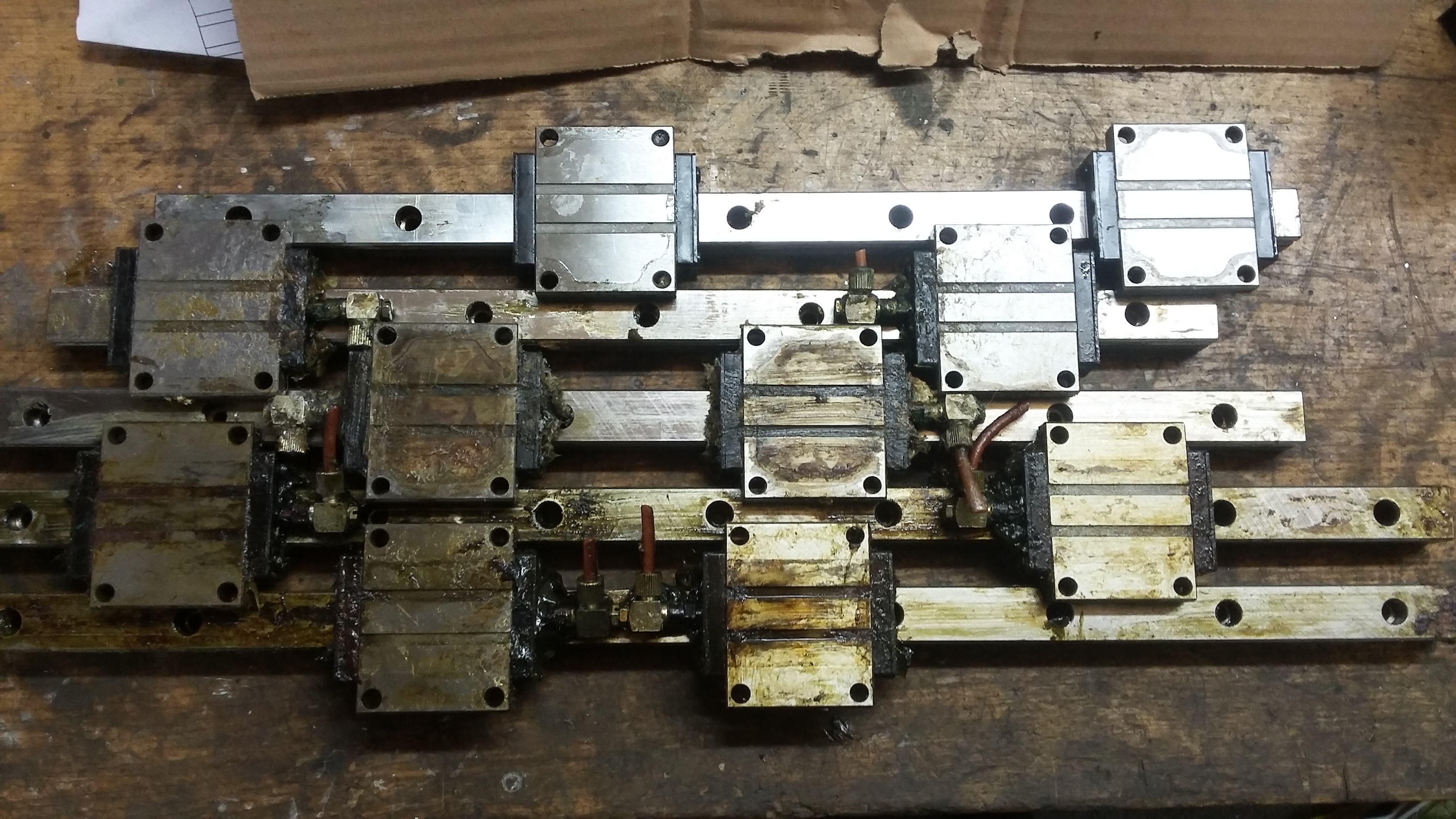 ještě mám nějaké 700mm rexroth/star velikost 20, 2 vedení 4 vozíky.. jsou uložené na ocelové liště cca 700x60x12mm takže to stačí namontovat na nějaký plotřík i s těmito lištami, minimálně použité cena 3000,-