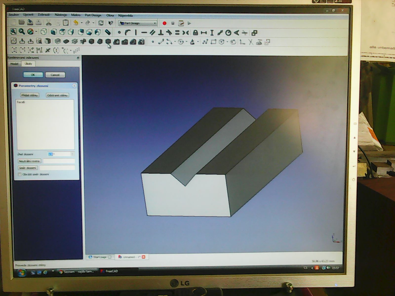 ) raď :potřeboval bych zkosit kraje té V drážky (tedy udělat náběhy) ale ne jen srazit pod 45 stupni nýbrž třeba pod 15 stupni...