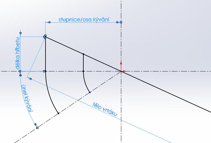 a náčrtek, o čem je řečPo namalování dvou příkladů v Autocadu je zřejmé, že poloměrem tj. vysunutím prisma přípravku se nastavuje délka hřbetu (zlom podbroušení):