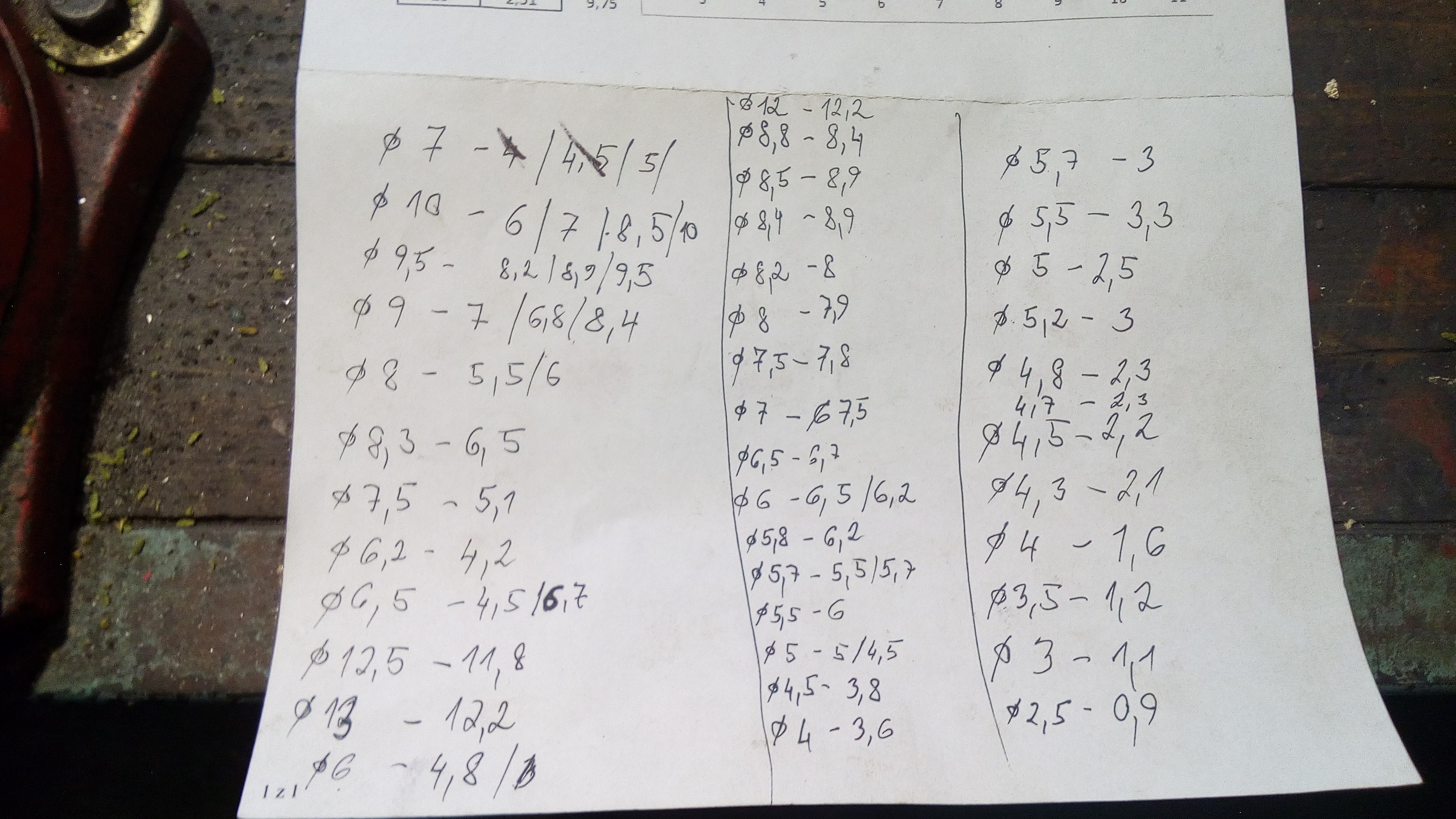 Ta tabulka z fota je opravdu jen hrubý nástřel nastavení stupnice na držáku . Stejnak pak musím podle konkrétního vrtáku držák drobně přenastavit.