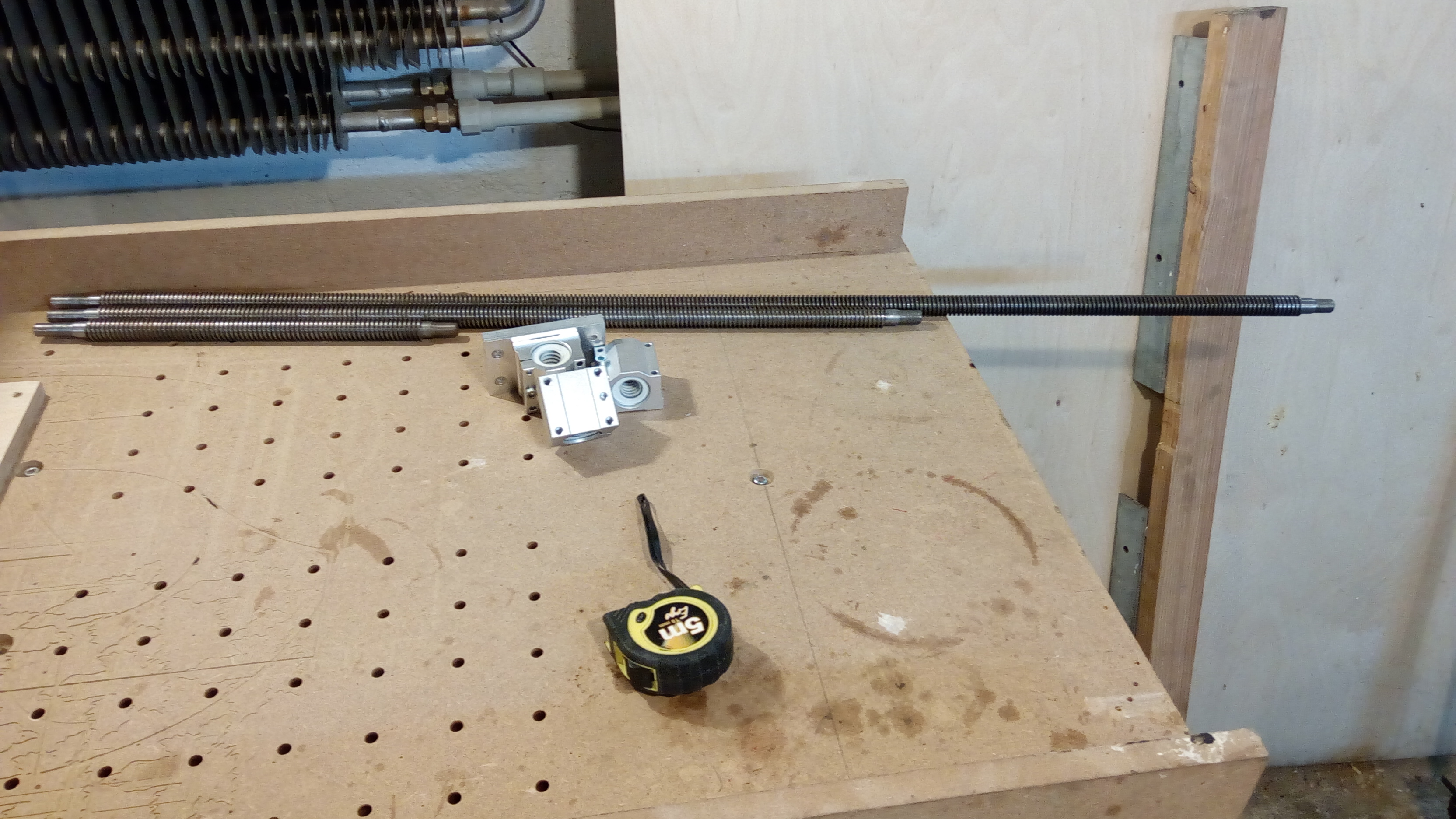 Dále k tomu jsou 3x trapézové šrouby TR2004, stoupání 4 mm a průměr 20mm. Délky jsou 280 mm, 700 mm a 1080 mm.