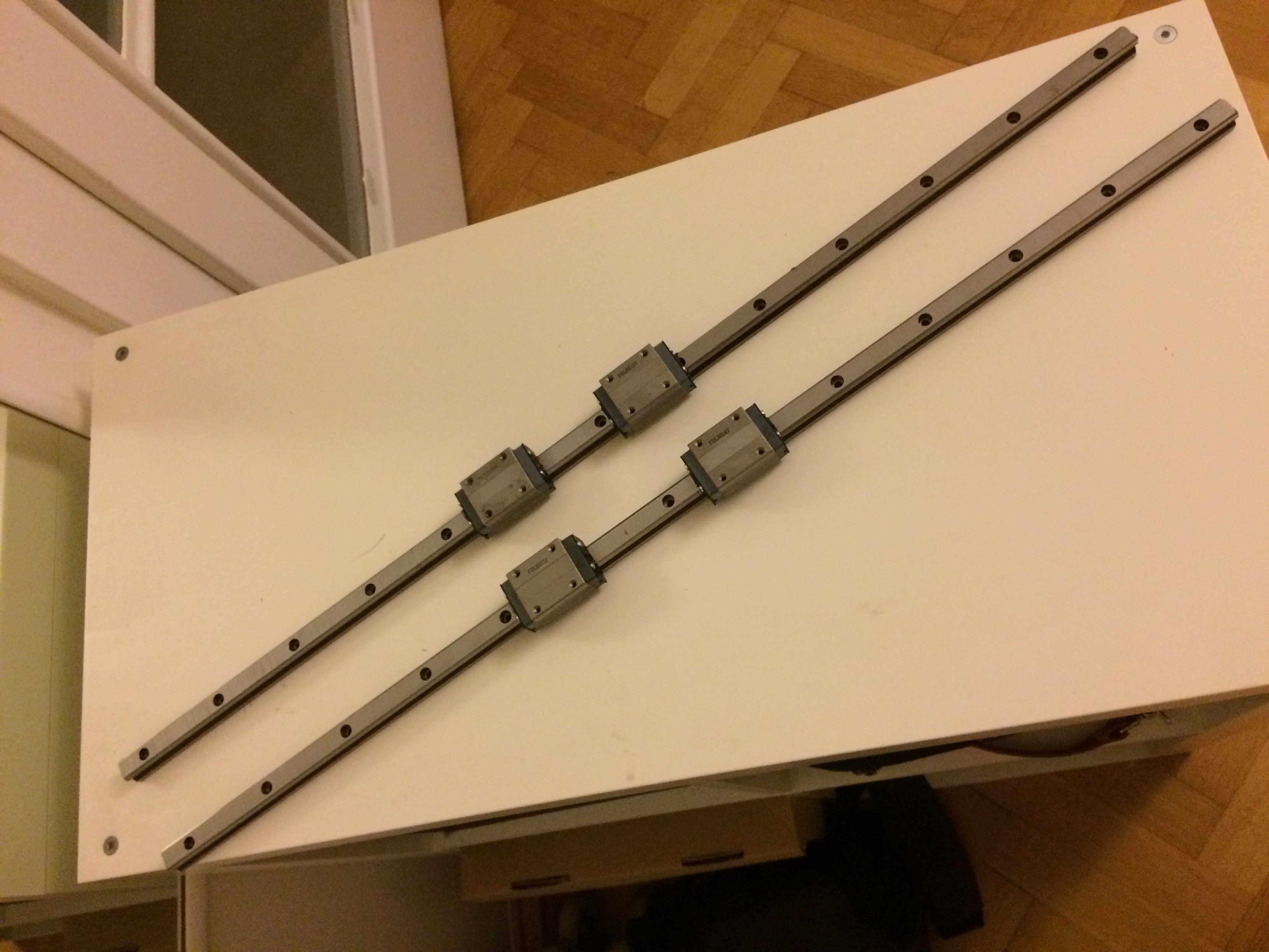 Prodám 2x kolejnici THK 15mm, délka 750mm, každá se dvěma vozíky