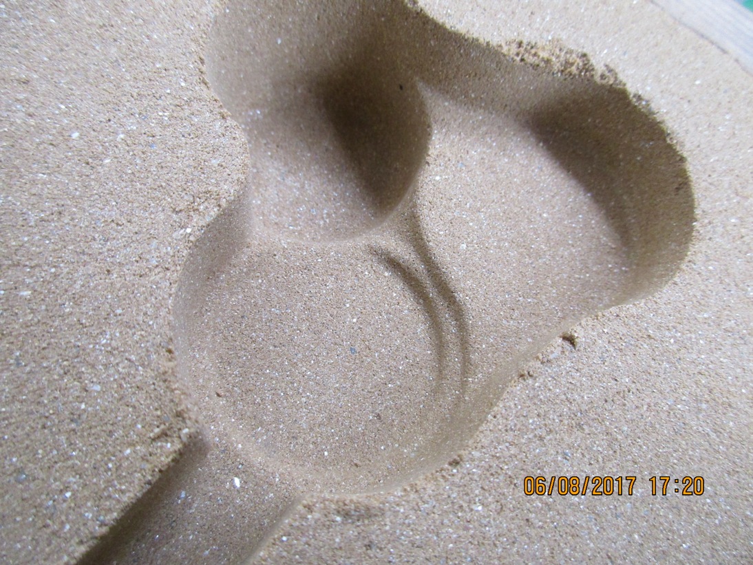 S pískem mám ten problém, že vlastně nevím, jak to má vypadat. Když to zmáčknu v ruce, tak tvar drží skvěle, ale podle mě není ok, že když třu po povrchu prstem, tak zrníčka vydrolím ven. Když to samé udělám v gumové rukacivi, tak to drží.