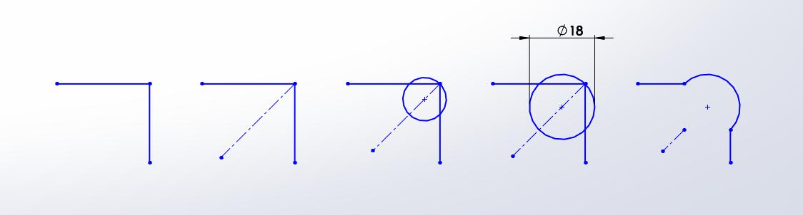 (jasně, osa úhlu, kružnice požadovaného průměru, pak většinu odmazat ... ale to by snad mohlo jít i lehčeji (solidworks))