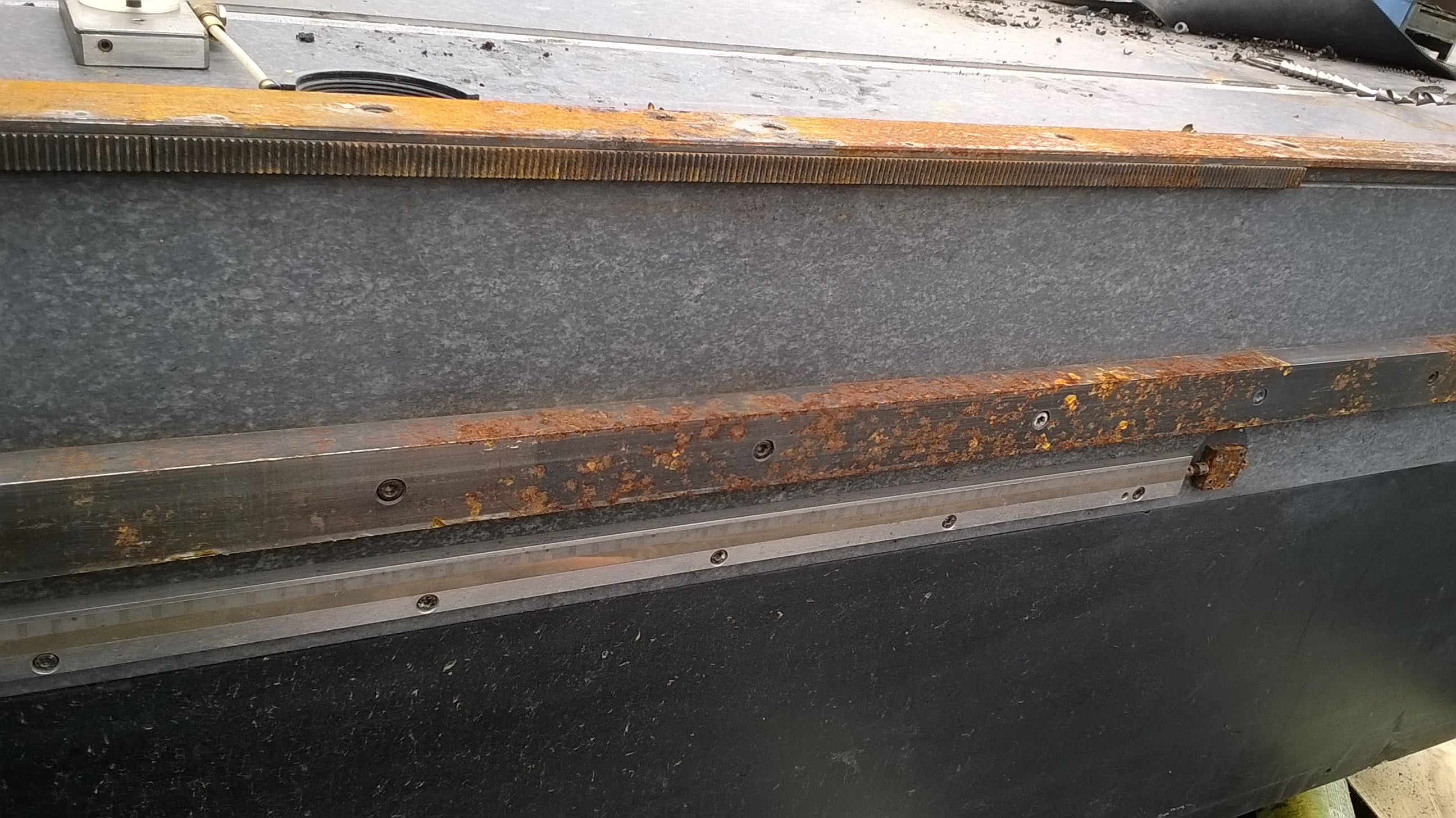 Originál portál jezdí po vzduchovém polštáři. Veškerý zatížení od portálu je přenášeno přímo na tu granitovou desku. Asi by šlo tam to lineární vedení nějak doplnit, spíše na tu horní lištu než na ty boční.