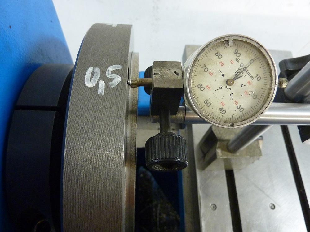 Prikladám fotky. Pretočil som ešte raz. Nôž naostril aby bol naozaj ostrý. Použil som stranový uberací. Povrch zostal na dotyk hladný tak, že indikátor neposkakuje ani trošku. Výsledok je stále rovnaký. Proste to mrdká 2 stovky. Nezlepšuje sa to ani keď skúšam merať na viacerých miestach smerom ku stredu. Čiže aj v polovici priemeru sú to stále dve stovky. Opravujem sa, axiálna hádzavosť.