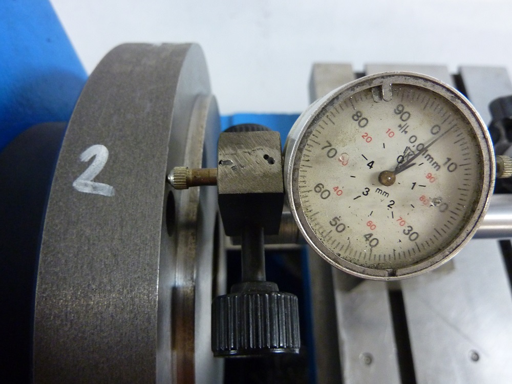 . Neviem, či to mohlo spôsobiť axiálnu vôľu 0,02mm ale vreteno som povytiahol šponu odstránil, nadstavil axiálnu vôľu ako treba, pretočil a príruba beží na nulu.