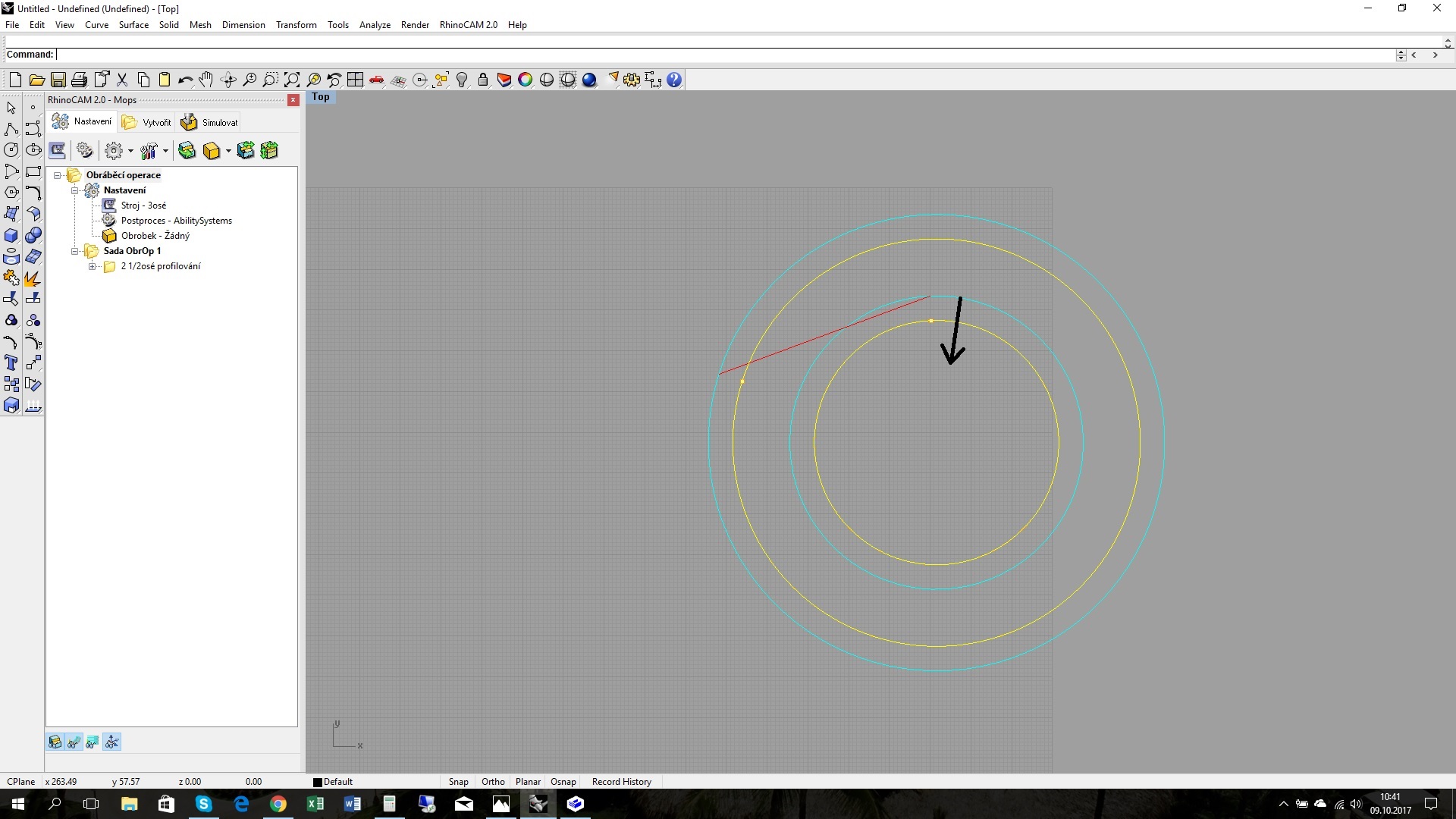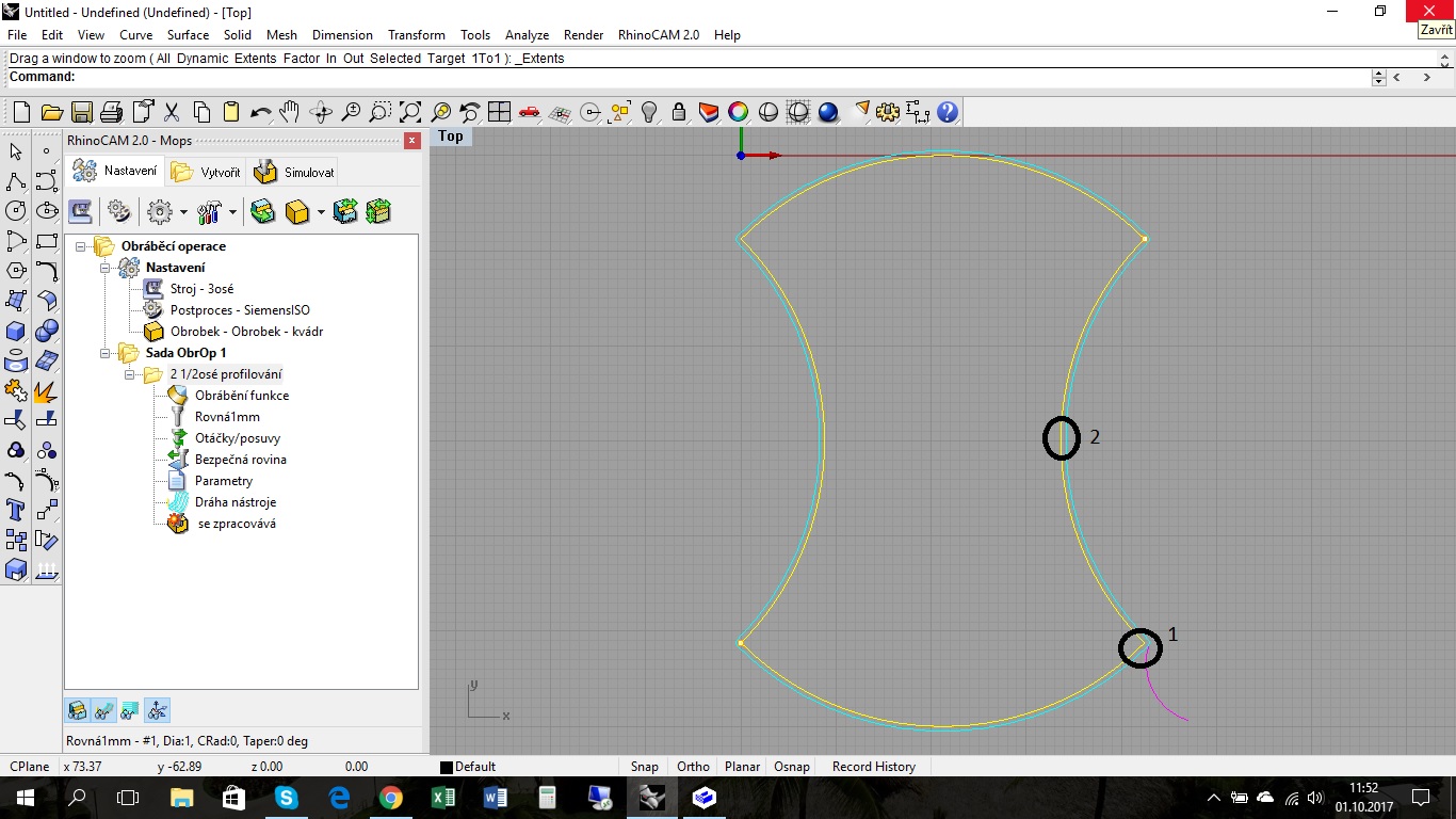 Pomohl by jsi mi ještě s frézováním mezikruží? Mám v rhinoCAM možnost zvolit jen frézování uvnitř nebo vně. Ale já bych potřeboval vetší kružnici frézovat zvenku a menší kružnici zevnitř. Viz. obrázek v příloze. Nyní to řeším dvěma programy, ale není to moc efektivní a zábavné. Je to možné nastavit v jednom programu?