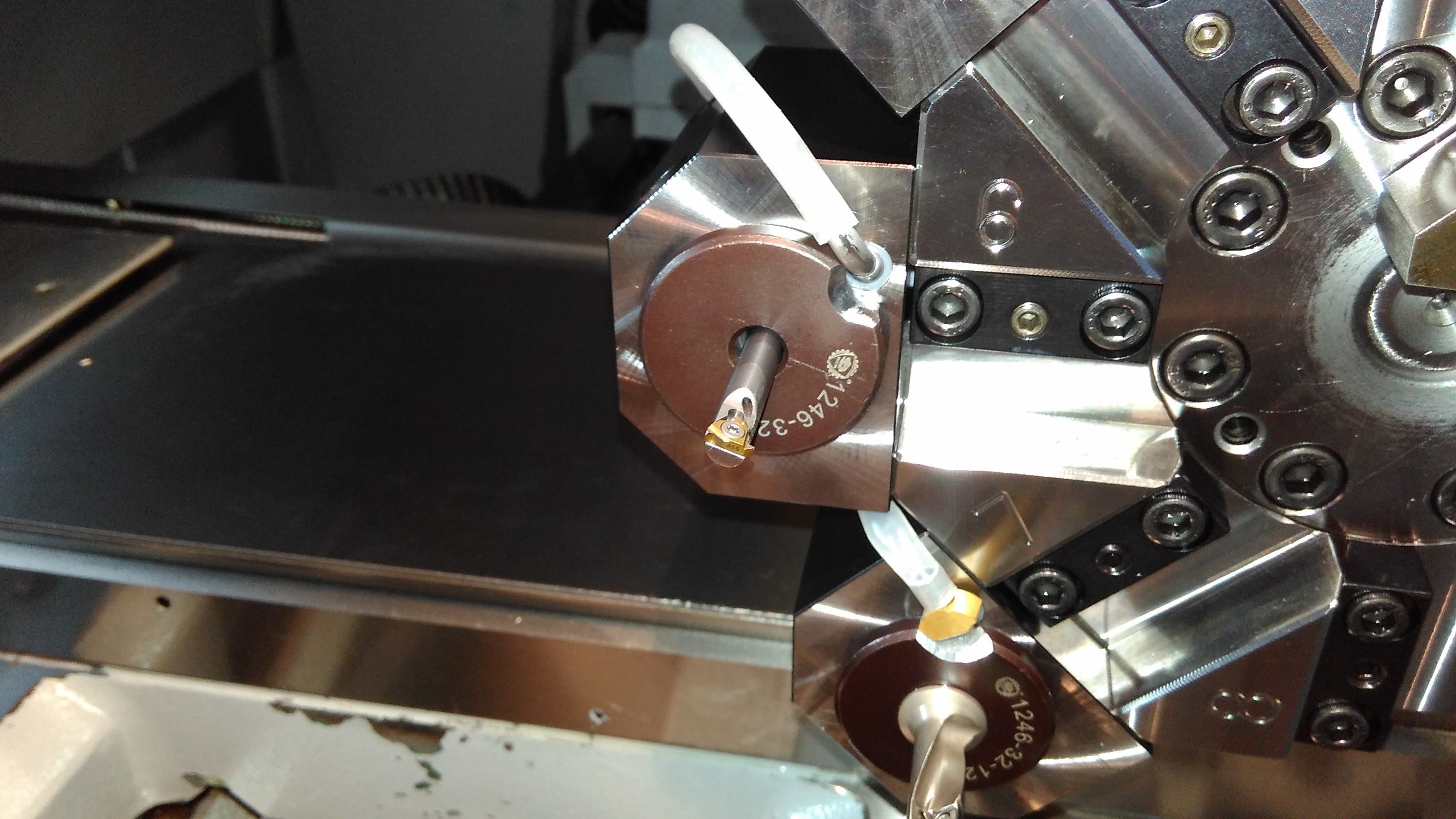 A podlanulozenia drziaku v revolvery a naklonu platku by som povedal ze to ma pod osou a ne sustruzi ale brusi spodkom platku do materialu.