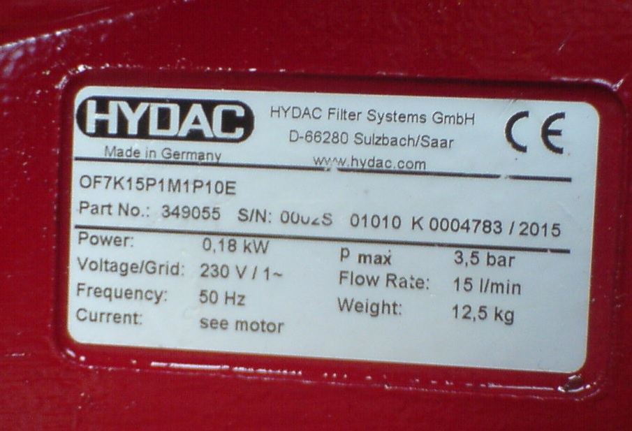 prodám filtrační agregát Hydac OF7K vč. klíče na filtry a hadice. Max. 15 l/min, 3,5 bar, možnost provozu bez oleje (max. 60h) díky vnitřnímu oběhu.