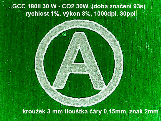 Vzhledem k rozdílnému chování ovladačů - u GCC nastavena šířka čáry v Corelu na 0,15mm u vlákna dvě kružnice s rozestupem 0,15mm