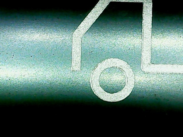 značení nerezu - rychlost 100mm/s výkon 30% 30Hz, defokus 5mm