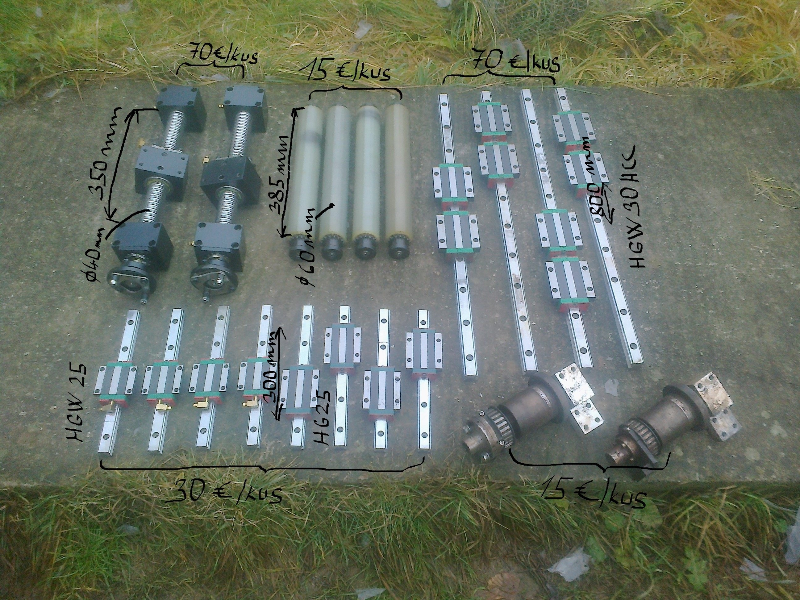 Predáme lineárne vedenia HG 25 a HGW 30. Ceny, dĺžky a počet vozíkov vidno na fotkách. Ďalej guličkové skrutky a pogumované točné valce.