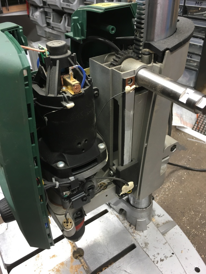 vpravo je vidět odměřování hloubky vrtání a i jak je k němu veden kabel - až potud vše vypadá OK