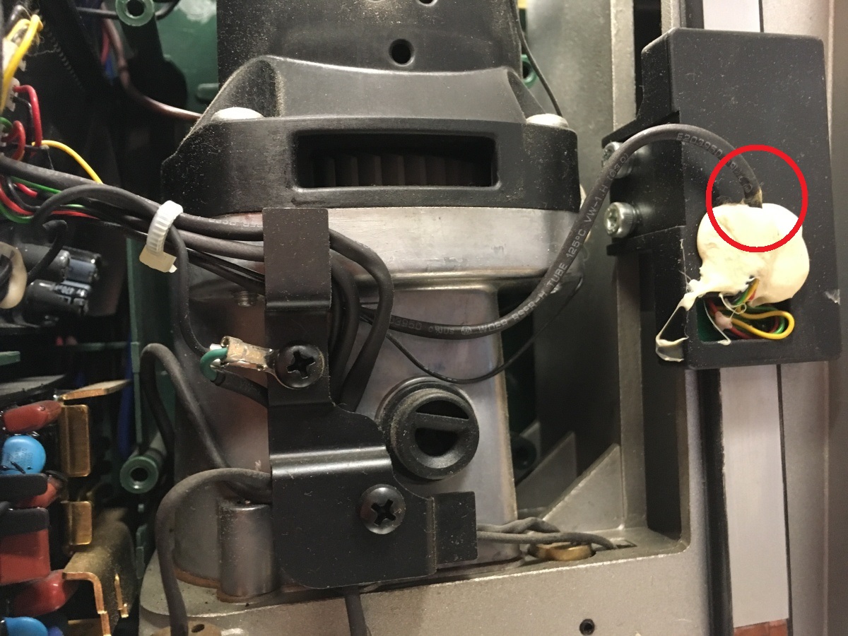 takto ale vypadá situace už jen při polovičním vysunutí vřetena - a je zvýrazněno, kde se u mne už přelomil kabel. Trochu by pomohlo kabel povysunout a prohodit ho v labyrintu na boku motoru na horní pozici.