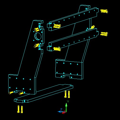 Chcel by som si postavit CNC. Chcel by som to koli elektronike a bol by som rad keby to zvladlo aj dural (pracovne pole formatu A3). Momentalne riesim konstrukciu a material. Chcem sa vas opytat na nazor ku konstrukcii prilozenej v prilohe - predovsetkym cast medzi x a y osou. Boky su kreslene s hrubkou 20mm a spojovacie listy 15mm. Konstrukcne sa mi javi najvhodnejsie dat to narezat plamenom al. vodnym lucom a potom to dat niekde opracovat na CNC tak, aby to do seba zapadalo. Na fore som sa docital ze AlMgSi0,5 (6060) je dost nevhodny lebo je makky. Pokusam sa tam najst viac info. Uz som sa dopatral ze rada 2xxx a 7xxx su podstatne lepsie. Chcel by som sa vas spytat na typ duralu aky pouzivate.