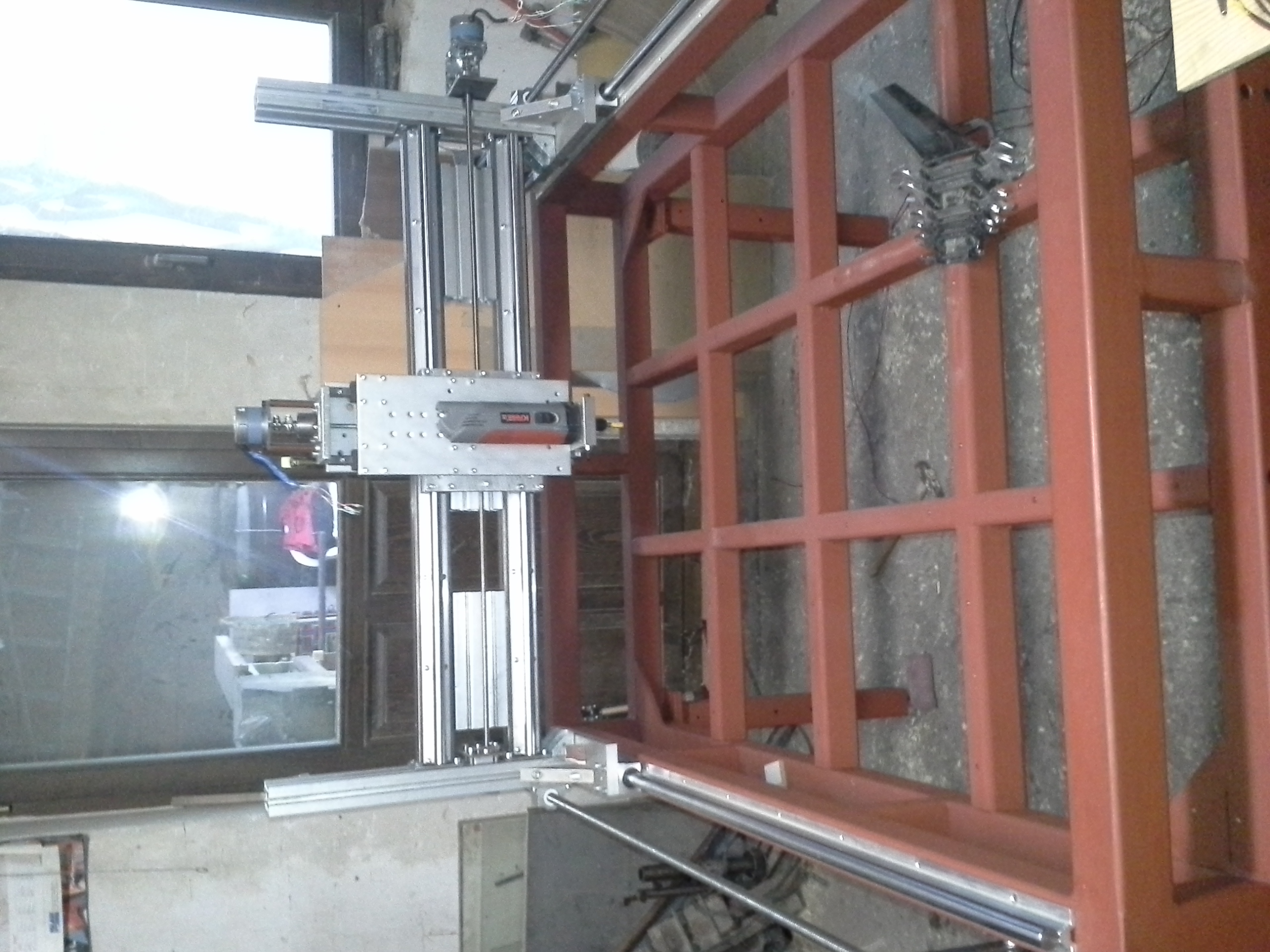 Zváraná konštrukcia jokel 60x60. Mam tam na osi x aj y podopreté lin.vedenie priemer 20mm. na z som použil priz. vedenie 15mm. Urobil som pod tlakom fin. rozpočtu par chyb. Stroj je v nefunkčnom stave. na riadenie používam arduino grbl. tam je problém: driver polulu vie motorom poskytnúť max cca 3A ale to sa už drivery prehrievajú a ochrana ich odpája. Použil som na osi x na každej strane 2 motory ale aj tak je to malo na prekonanie trenia + krivosti skrutky 16x4 trapéz. ďalší problém je vibrácia trapézov na osi x ale aj na osi y. na osi y mam trapéz 10x1mm :D strašné to chveje pri max otáčkach. Funkčná je akurát os z. Tam je závitovka m8 + pozváraná matice z m8 závitovky. matice sú 2 na vymedzovanie vôle. chcem sa opýtať ako ďalej. Mašina by mala slúžiť na opracovanie prevažne dreva ale chcel by som aj frézovať dural sem tam do presnosti 0.1mm. polohovanie nemusí bit extrémne rýchle ale nech to nie je ani slimačina .chcel by som vedieť či by stačilo na osi x zameniť trapéz 16x4 za 20x5 na dĺžke 1500mm ďalej či mam dať na každú stranu osi x 1 motor alebo 1 motor do stredu medzi osi a urobiť rozvod remeňový. Po prípade aké motory zvoliť. Portál y váži do 50 kg zhruba ešte som ho nevážil. Ďalej by som chcel vedieť či by stačilo použiť na osi y trapéz 16x4 alebo je dobre mat rovnaké stúpania na osi x aj y? A celkovo neviem akú dosku, motory + drivery použiť .môj rozpočet na dokončenie stroja je cca 500e