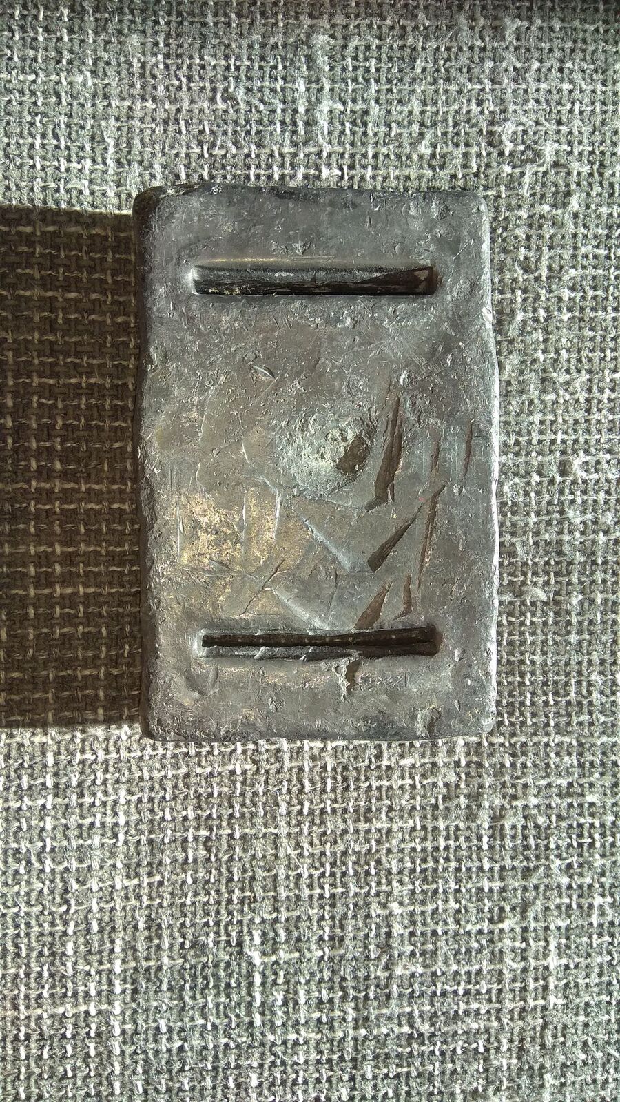 Taky jsem ti psal, že stačí kus úhelníku 20x20 mm a svařit nebo sešroubovat rámeček a dva kousky pro otvory pro pásek. Výsledek takového závaží přikládám - snad je tvar formy z toho pochopitelný...pozici při lití napovídá staženina a otisky úhelníků pro otvory na provlečení pásku jsou také vidět. Práce na 15 minut a závaží je praktické a ošklivé, takže ho nikdo krást nebude. Pokud je potřeba lehčí, nalije se do formy méně olova. To moje závaží má skoro 2kg, protože jsem si blbec tenkrát koupil 8mm silný neoprén a navrch 8mm silný šort, takže jsem měl výtlak jako zaoceánský parník. Celkově jsem se vyvažoval 22kg olova. Děs a běs...