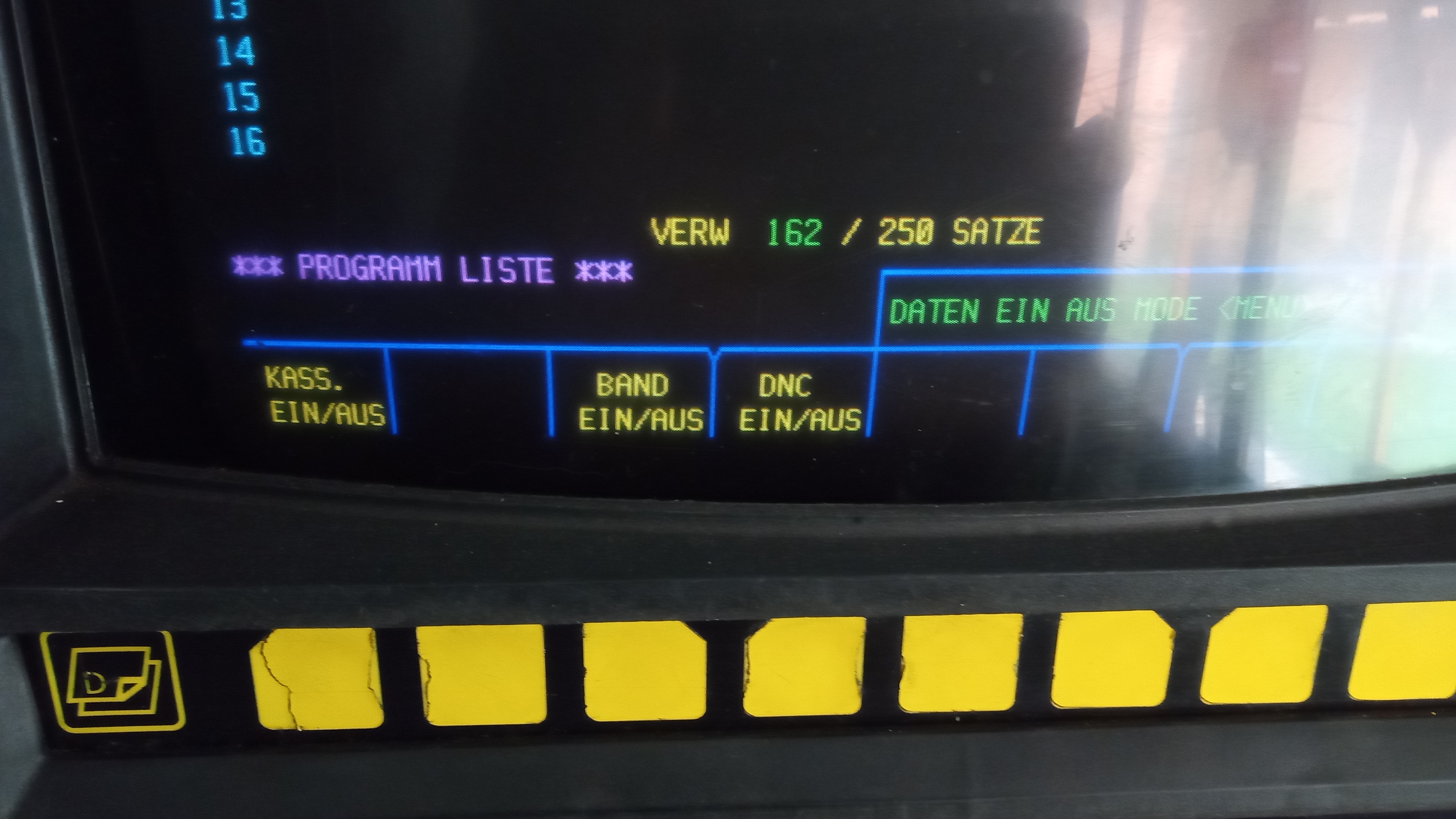 Mám prosbu. Potřeboval bych nějak zpřístupnit externí úložiště pro mazak quick turn 8 s mazatrolem cam t2. Mám zapůjčenou jednotku DNC, ale samozřejmě to spolu nemaká. Odhaduji, že problém bude na straně qt8. Pokud v záložce PROGRAM LISTE přepnu DATEN EIN/AUS dostanu nabídku dle foto.