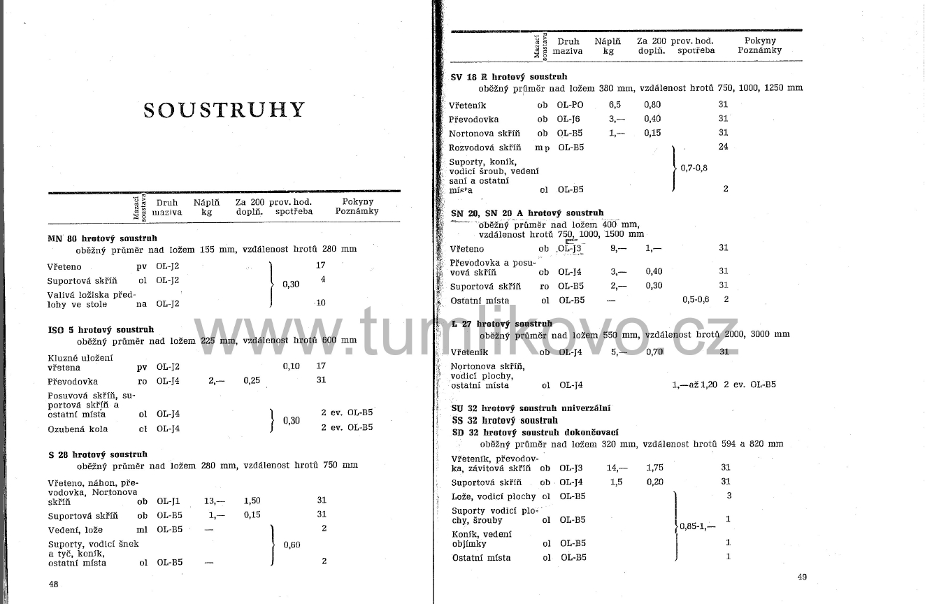 OL-J46 i OL-J32 jsou ale vhodné pro teploty do 60°C. To nebude při občasném použití problém, ale pokud soustruh pojede dlouho, může se olej nad tu teplotu dostat. KV46, který ti poradili, má téměř stejnou viskozitu (o něco ménší, než OL-J46), vydrží mnohem vyšší teploty, je primárně určený pro kluzná ložiska. Hlavním plusem oleje KV 46 jsou výborné protioděrové vlastnosti a vysoká únosnost, což v převodovce bude dokonale svědčit zubům. Má taky níž položený bod tekutosti, ale to tě trápit nebude, -20 asi v dílně při práci mít nebudeš :) KV46 by pro mně byla jednoznačná volba. Případně můžeš jít do jiného ložiskového oleje, který bude mít viskozitu kolem 46 mm2/s při 40°C.