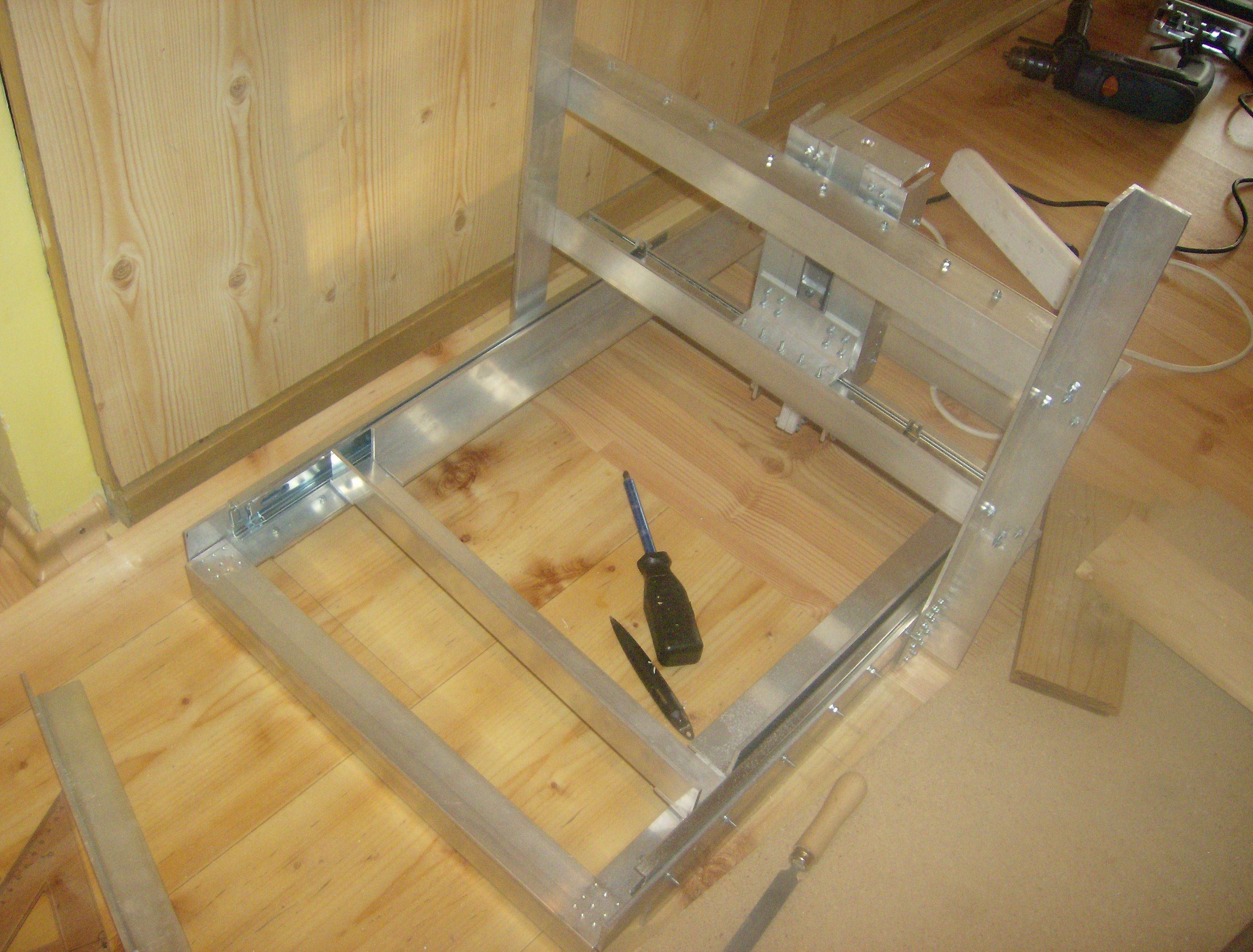 rozrobena hobby freza, zatial pouzitych 9 metrov AL L profilu 40x40x4 mm.