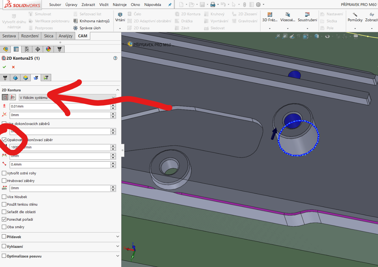 Děkuji všem za rady, delší dobu jsem teď tady nebyl. V HSM worksu nastavuji standardně kompenzaci v řídicím systému, začal jsem teď víc používat opakování dokončovacího průchodu, tím se přesnost děr dost zlepšila.S vnějšíma konturama problém nemám....Ale zjistil jsem že největší vliv na přesnost děr má volba velikosti posuvu. Například vyjíždím díru v Al o D=10mm frézou 3 břity průměr 6mm a dám fz=0,05 i s opakováním průchodu, výsledek díra je menší o cca 0,07mm.
