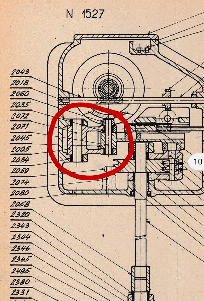 Ta KM matice se povolila, jak nebyla zajištěná MB podložkou. Je to uložení kola, na kterém je věnec průměr asi 600mm. Tohle celé tam tancovalo a dělalo slušný kravál. Ložiska jsem musel stáhnout. Jenže je před tím buben s výstředníkem. To musí dolů. A tomu bubnu zas překáží mazací trubička. Tu jsem chtěl vytáhnout, ale byla delší. Musel jsem si pootočit bubnem aby trubička vyšla do drážky. Rukou s tím hnout nejde, tak jsem si debil cvrnknul motorem přes spojku no a už to letělo proti mě :-( , byl jsem bohužel moc natěšený.