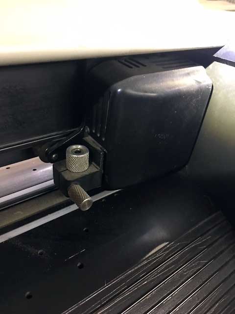 Takže u Tebe nůž čouhá hodně ven a hloubka řezu se tedy musí nastavovat přesnou kalibrací výšky toho držáku nad podložkou.