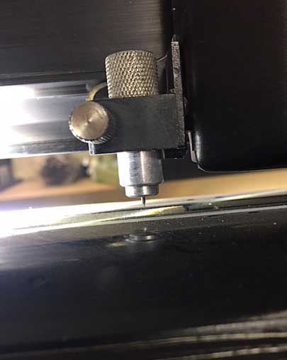 Všechny "malý" Rolandy tj. Stika a další plottery - to mají udělaný tak, že výměnný držák nože zásadně jezdí přímo čelem po řezaném materiálu, vyložení nože (nastavuje se to tím zadním dílem brzděným O kroužkem) tudíž dělá hloubku řezu.