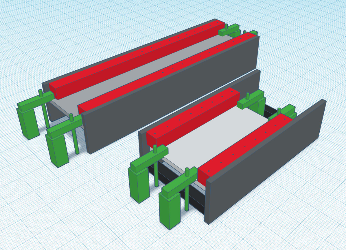 Má někdo v okolí Prahy 6 volnou kapacitu na srovnání ocelové konstrukce o celkové velikosti 1120x340x200mm a 720x380x200mm? Potřebuji srovnat (červenou barvou) menší plochu pod lineární vedení a rovnou i vyvrtat díry M6 pro uchycení kolejnice. Oba dílce jsou rozmontovány a váha bude kolem 180kg a 140kg. Materiál je běžná ocel třídy S235JR. Uchytit by to mohlo jít snadno (zelená barva)