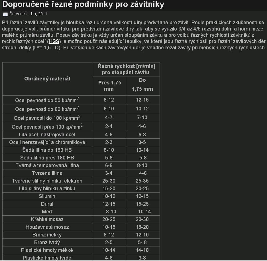 Ale je do bez záruky, len moja domnienka. možno výrobca dodá rezné parametre priamo pre rôzne závity.